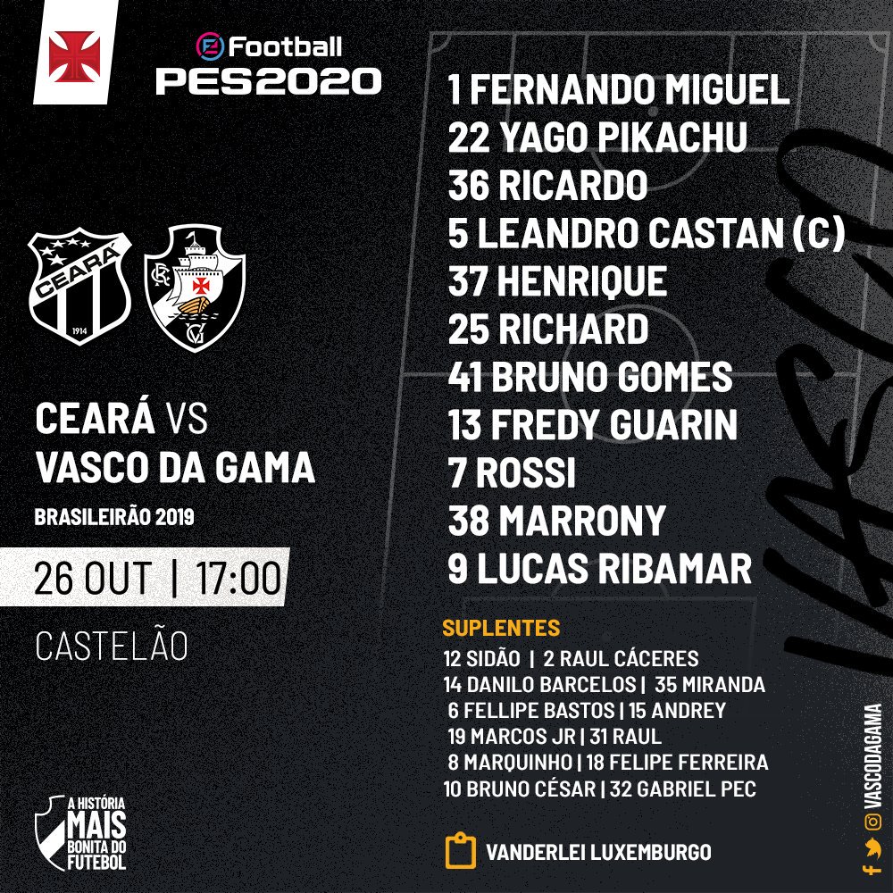 Confira a escalação do Vasco; Ricardo Graça e Fredy Guarín são as novidades no time titular