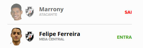Na volta para o 2º tempo, Felipe Ferreira entra no lugar de Marrony