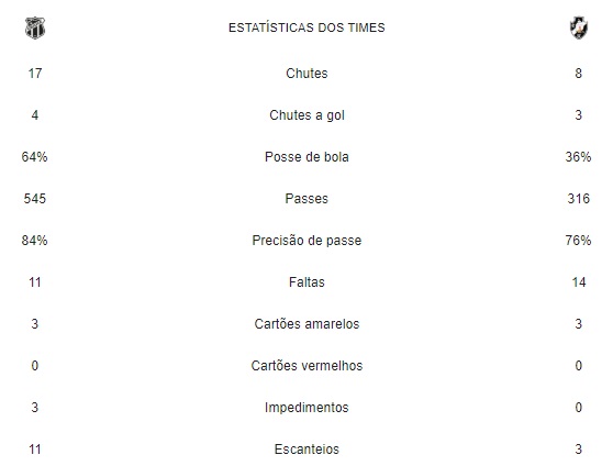Cartões amarelos: William Oliveira, Leandro Carvalho, Auremir-no banco (Ceará); Bruno Gomes, Richard, Rossi (Vasco)