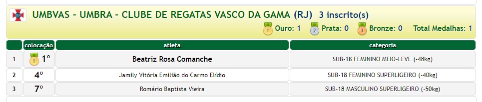 Fonte: NETVASCO (texto), CBJ (resultados), Instagram Equipe Umbra (foto)