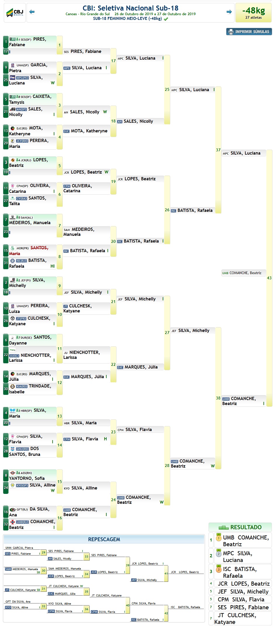 Foi disputada no último fim de semana, em Canoas (RS), Seletiva Nacional Sub-18. O Vasco teve 3 atletas competindo e conquistou uma medalha de ouro com Beatriz Rosa Comanche, na categoria até 48kg. Confira abaixo o desempenho dos vascaínos e o caminho de Beatriz até a medalha de ouro.