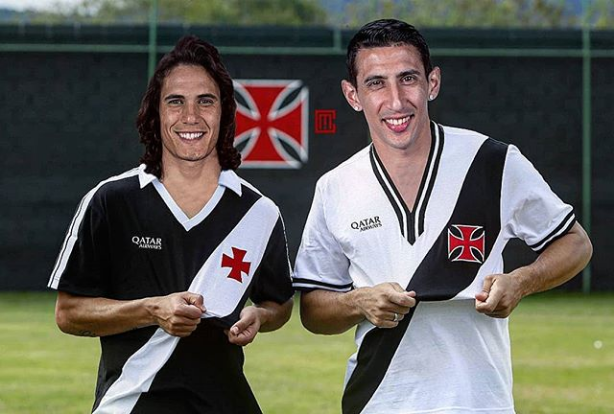 Torcedores criam montagem de Cavani e Di María com camisas do Vasco; veja
