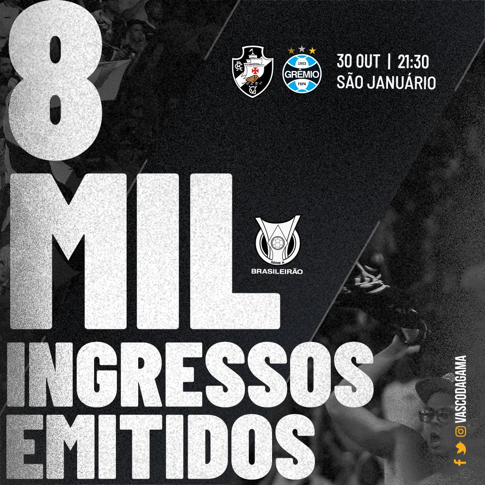 Já foram emitidos 8 mil ingressos para Vasco x Grêmio