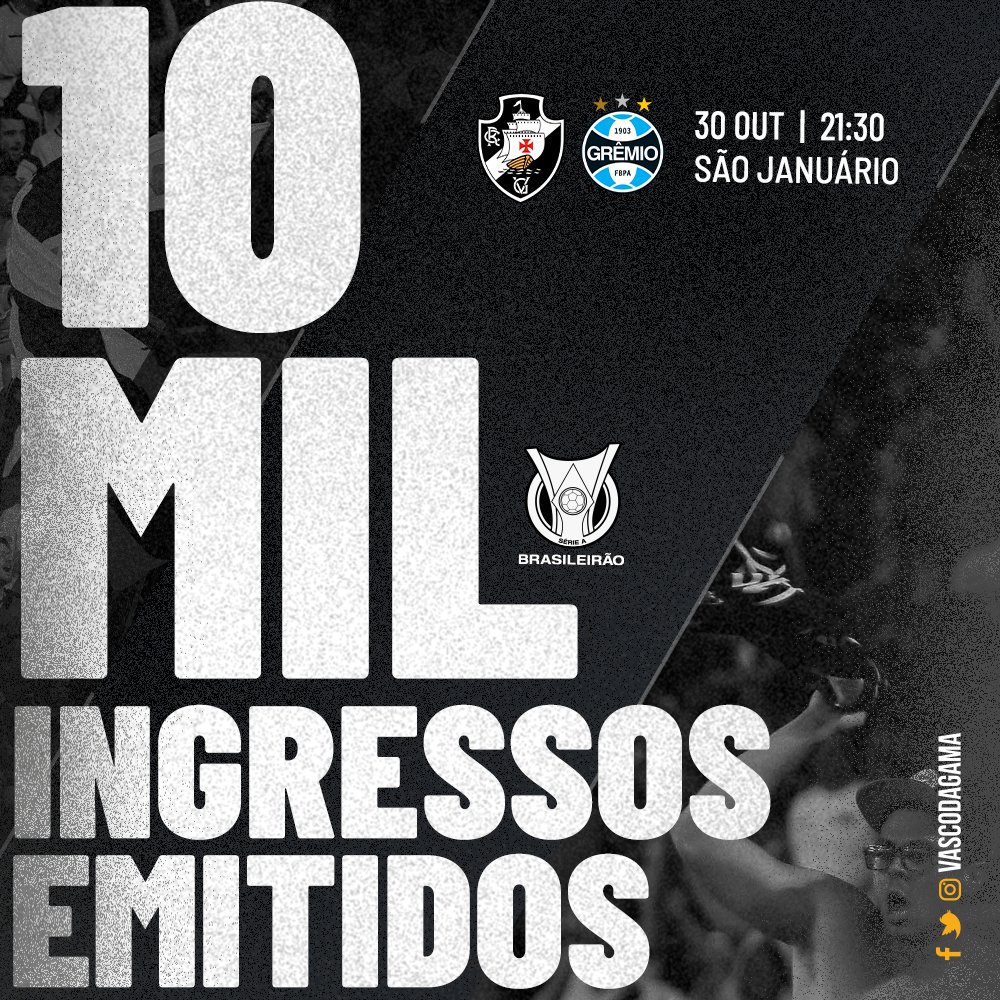 28/10/19 - Já foram emitidos 8 mil ingressos para Vasco x Grêmio