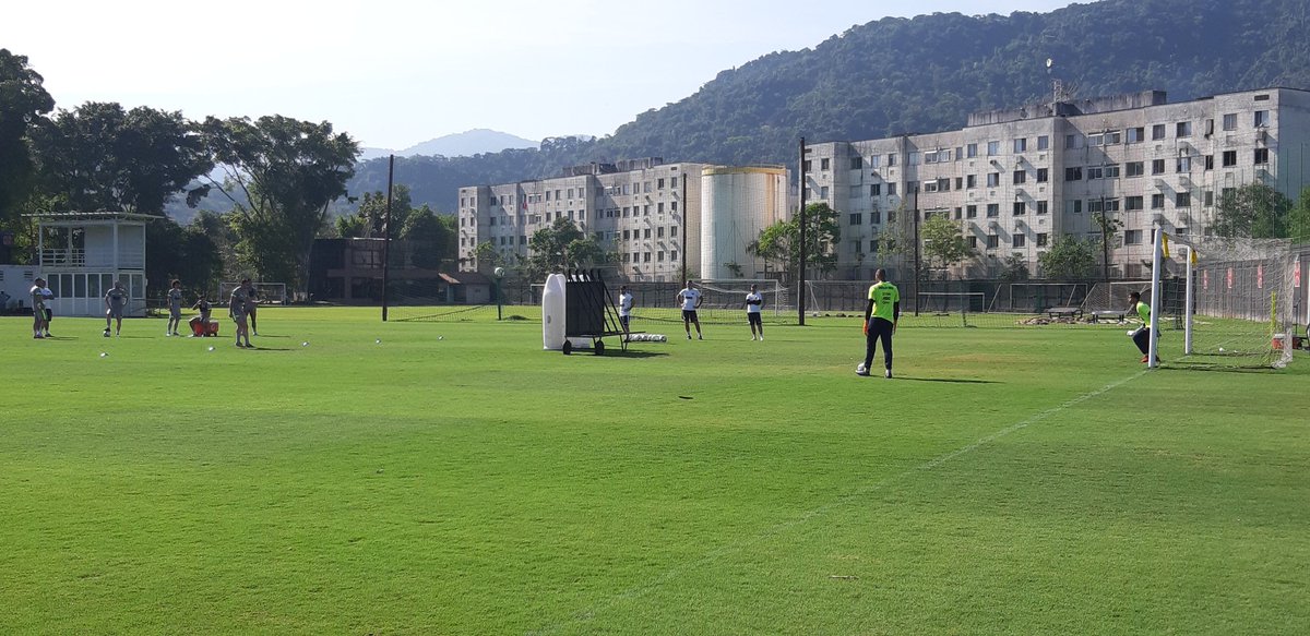 Guarín, Bruno César, Danilo Barcelos, Marquinhos e Valdivia entraram no gramado do CT do Almirante antes dos demais. Fizeram trabalho físico e agora treinam cobranças de falta. #gevasco