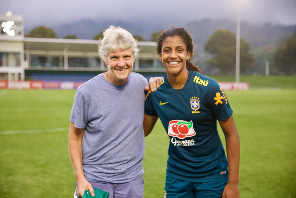 A Granja Comary foi palco de um encontro de gerações de Meninas da Colina. A atual capitã da Seleção Brasileira Sub-20, Angelina Constantino, foi formada em São Januário e hoje é titular da equipe profissional do Santos, para onde foi em 2017. Já Kaylane é destaque das equipes Sub-18 e adulta do Vasco. As duas tem algo em comum: foram formadas pelo técnico Antony Menezes, que falou um pouco sobre as crias da #BaseForte: