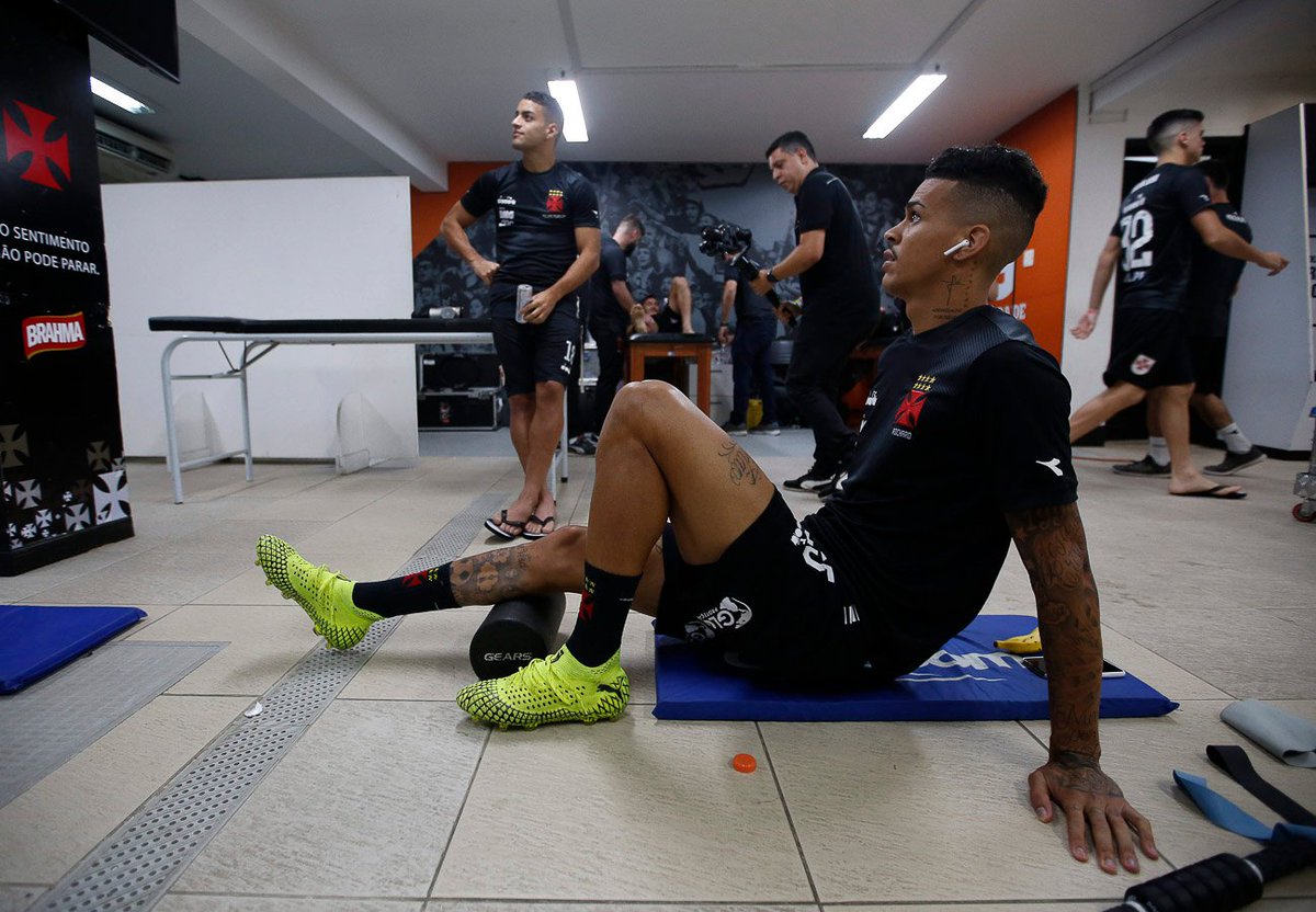 21:07 - Jogadores de Vasco e Grêmio se aquecem no gramado de São Januário