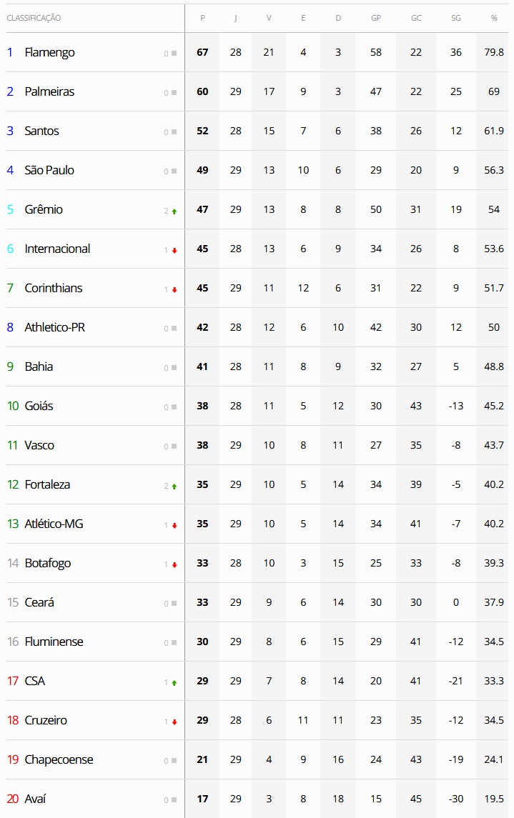 Apesar da derrota para o Grêmio por 3 a 1, e mesmo 4 jogos faltando para o fim da 29ª rodada, o Vasco não perderá a 11ª colocação no Campeonato Brasileiro.