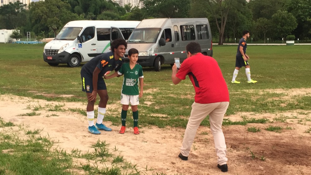 Assim que o treino acabou, algumas crianças que jogam nas categorias de base do Goiás o abordaram e pediram para tirar algumas fotos. Até mesmo um dos policiais que faz a escolta da seleção brasileira em Goiânia aproveitou para fazer uma selfie com o atacante.