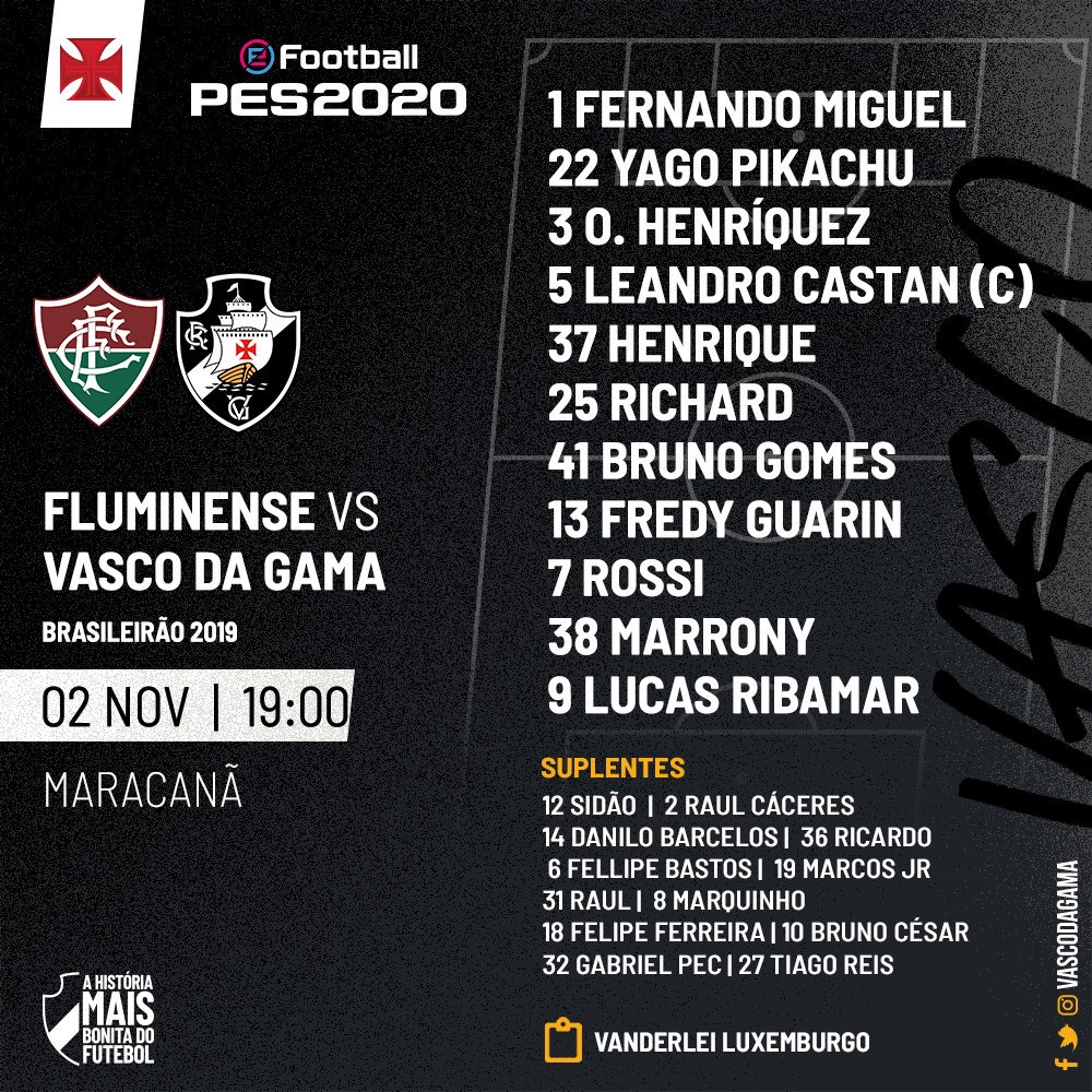 30/10/19 - Confira a escalação do Vasco; Raul é a novidade no time titular