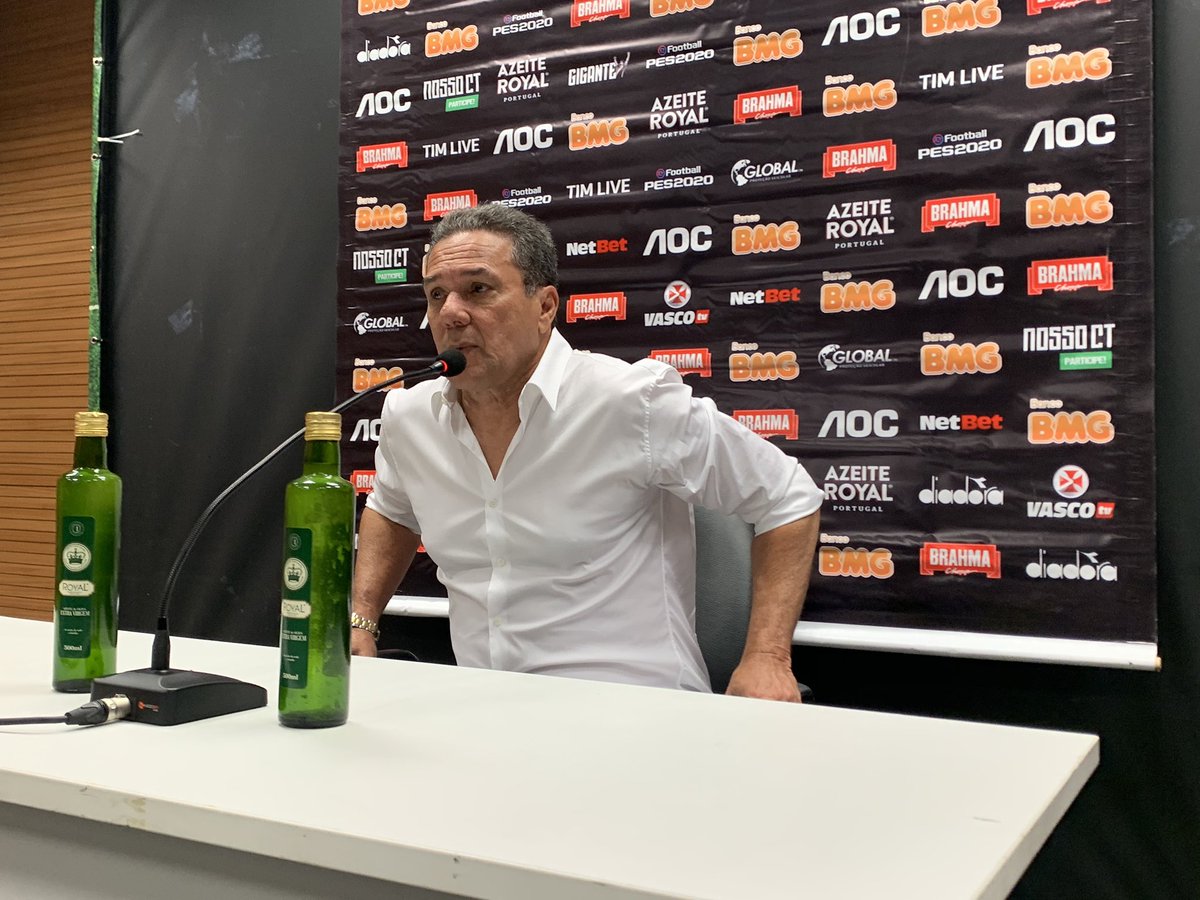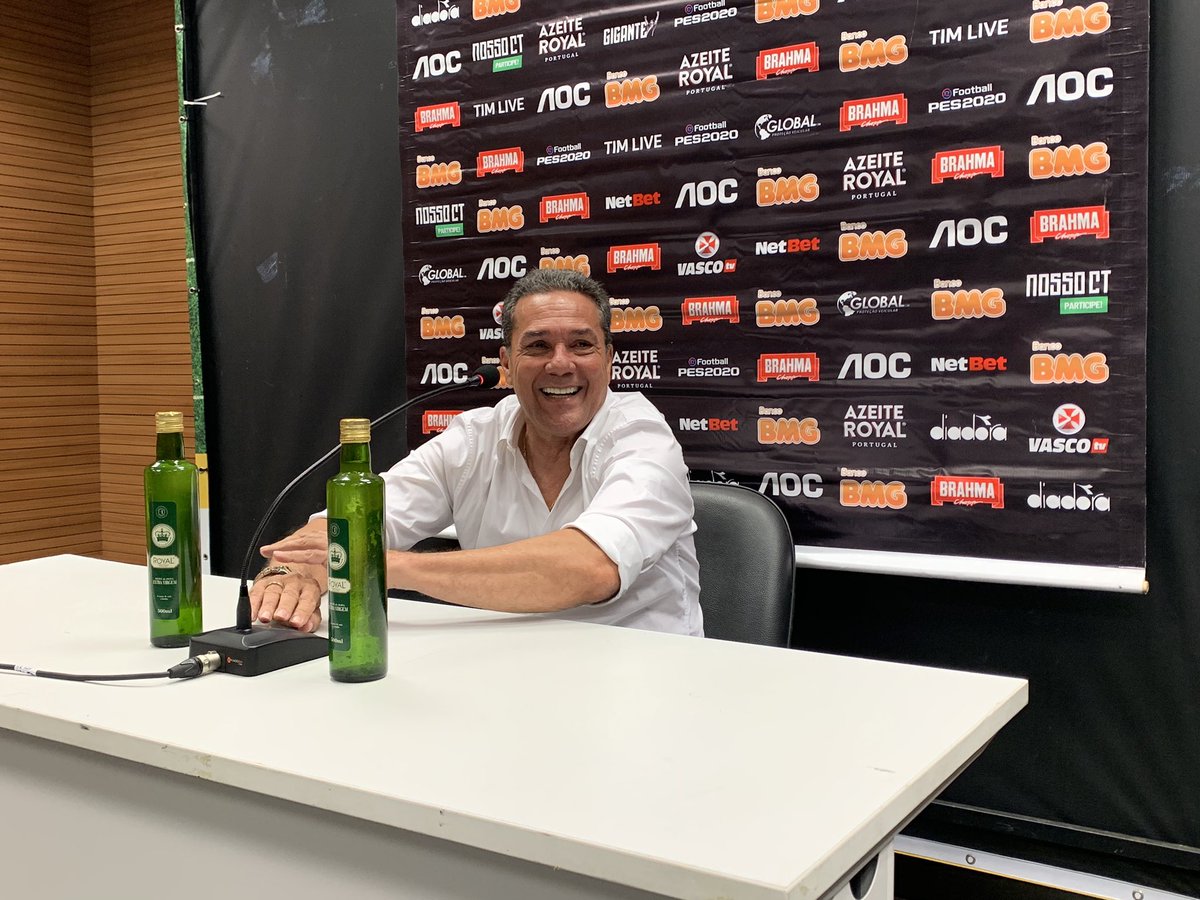 "Essa cadeira aqui tá abaixando. Sacanagem. Daqui a pouco estou com a bunda no chão. Não estou gordo não, hein", diz Luxemburgo, agora mais baixo #gevas