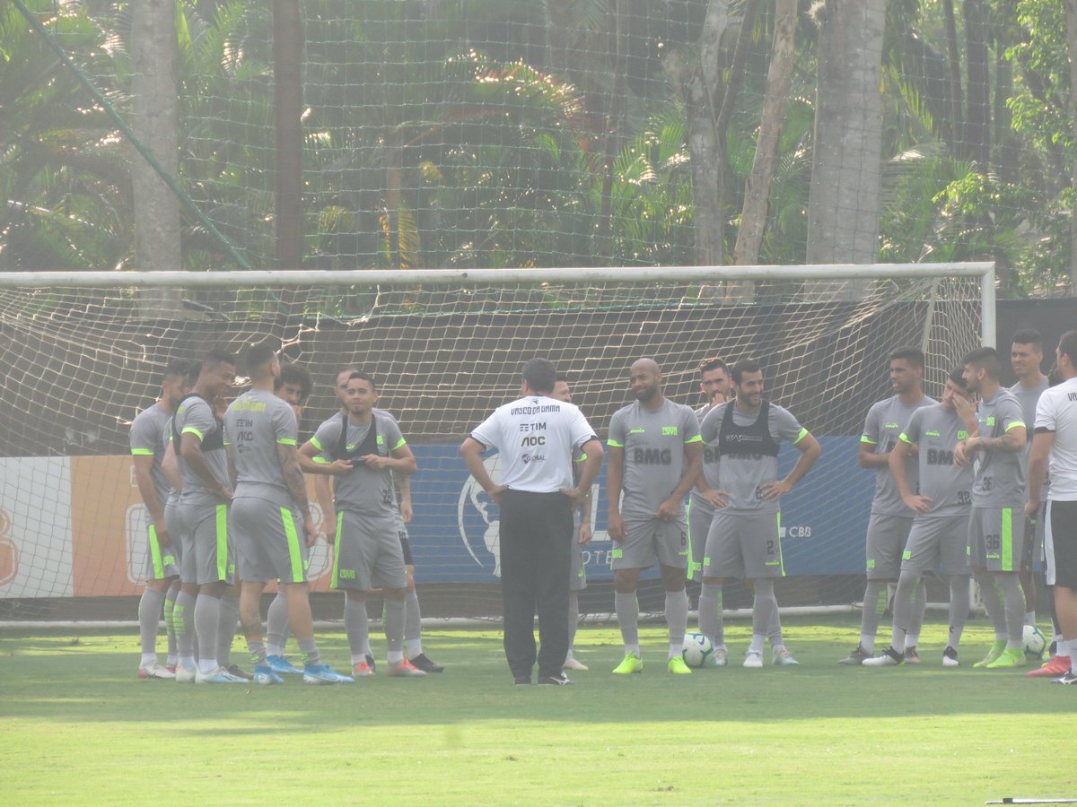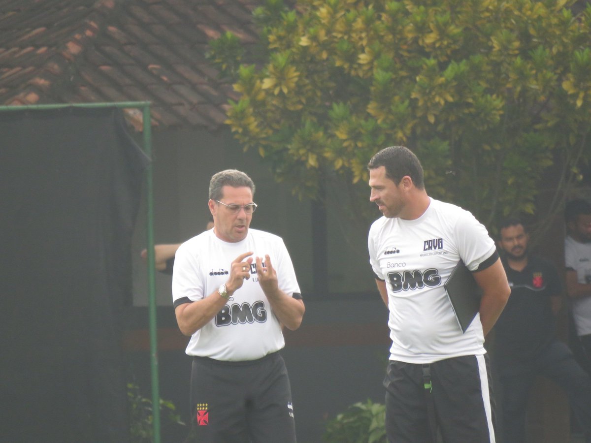 Luxemburgo conversa com o auxiliar Mauricio Copertino antes do treino. #gevas