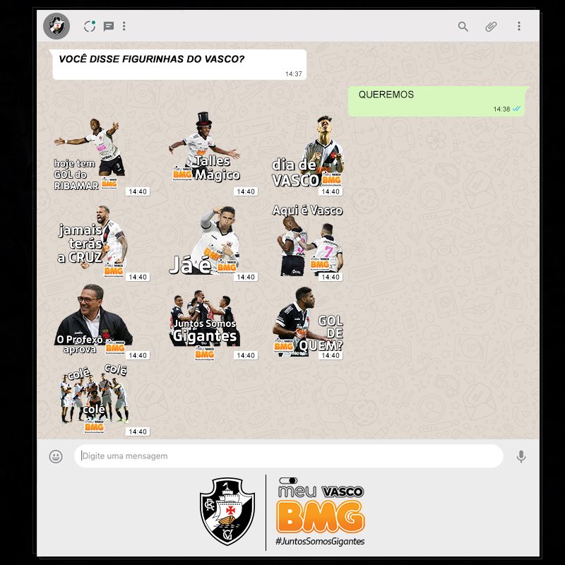 É isso mesmo, torcedor, o @MeuVascoBMG é seu. Para isso, criamos figurinhas exclusivas do nosso Vascão para você! Baixe no link (https://t.co/sWd8fe2X0L) e bora se divertir!