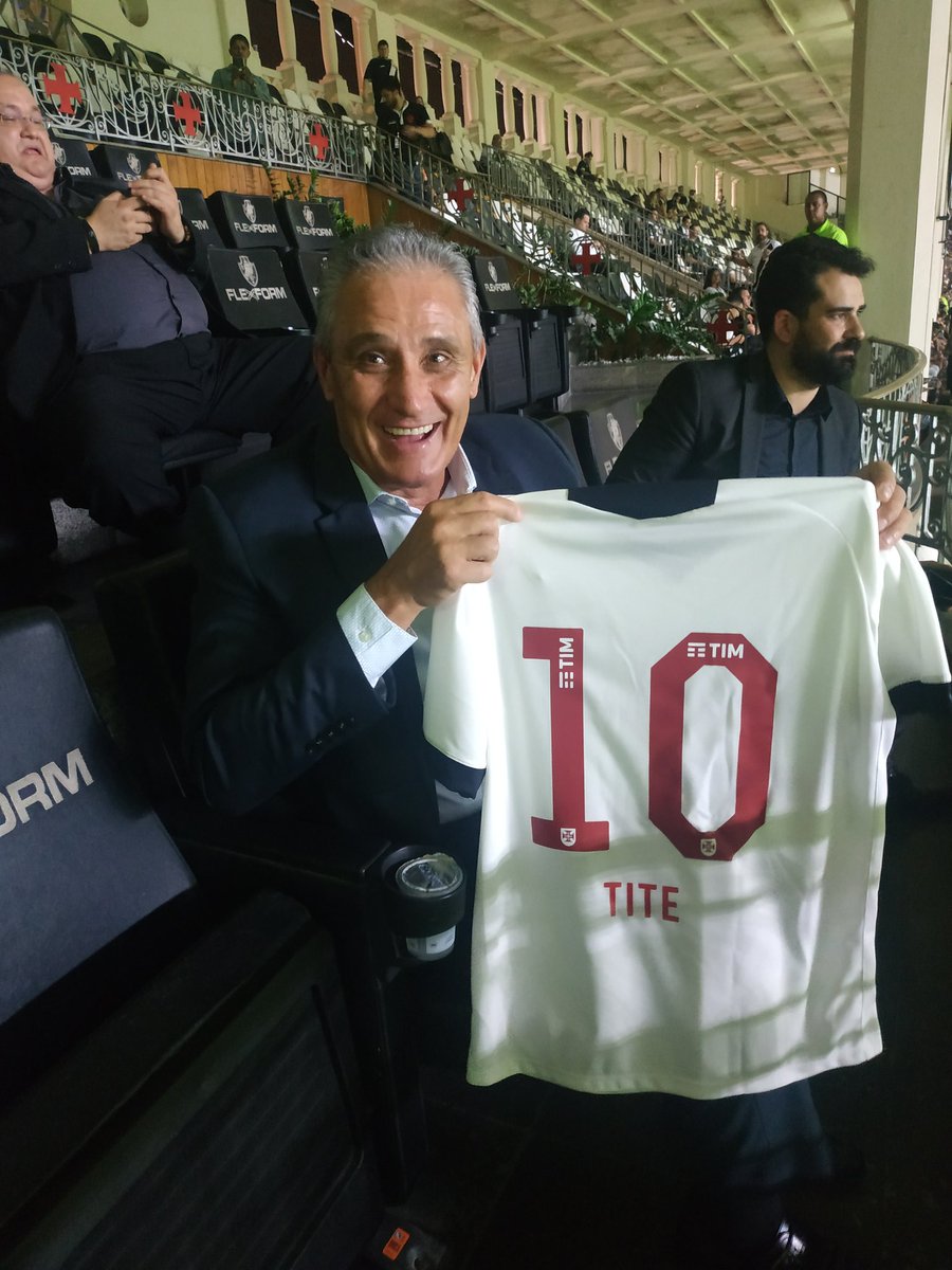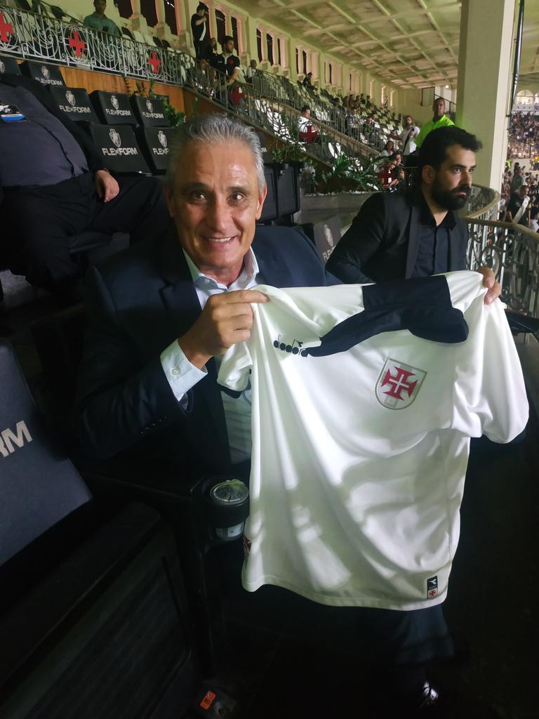 Técnico da Seleção Brasileira, Tite esteve em São Januário e recebeu camisa 3 do Vasco personalizada com o seu nome