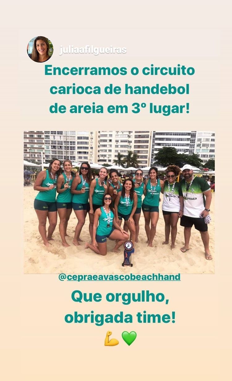Às meninas do @cepraeavascobeachhand, que querem vencer e continuar sonhando com títulos, quero dizer que: neste ano fomos desafiados ao extremo, mas mudamos a postura, agora temos garra e vontade de time campeão e não vamos descansar enquanto houver uma bola em jogo. .