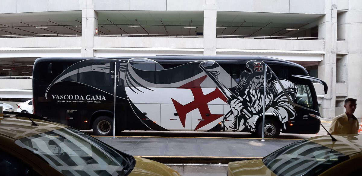Boa tarde, amigos. Já aqui no aeroporto para o desembarque do Vasco. Ônibus da delegação na área! #gevas