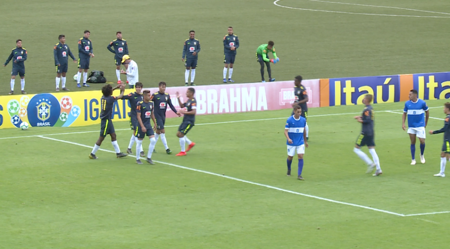 O duelo foi disputado em três tempos de 30 minutos cada. O técnico Dalla Déa rodou bastante os atletas e promoveu diversas alterações ao longo do confronto. O primeiro gol da Seleção Brasileira Sub-17 saiu através da bola parada. Gustavo Garcia cobrou escanteio da esquerda e Kaio Jorge subiu bem para abrir o placar. Ainda na etapa inicial, Talles Magno fez uma bela jogada pela esquerda, foi até a linha de fundo e cruzou rasteiro na área. Luiz Gabriel chegou batendo e ampliou a vantagem.