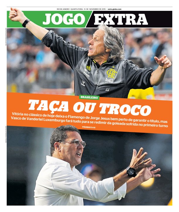 Pelo Campeonato Brasileiro, Vasco e Flamengo se enfrentam nesta 4ª-feira às 21h30 no Maracanã. Veja como a imprensa destaca o clássico.