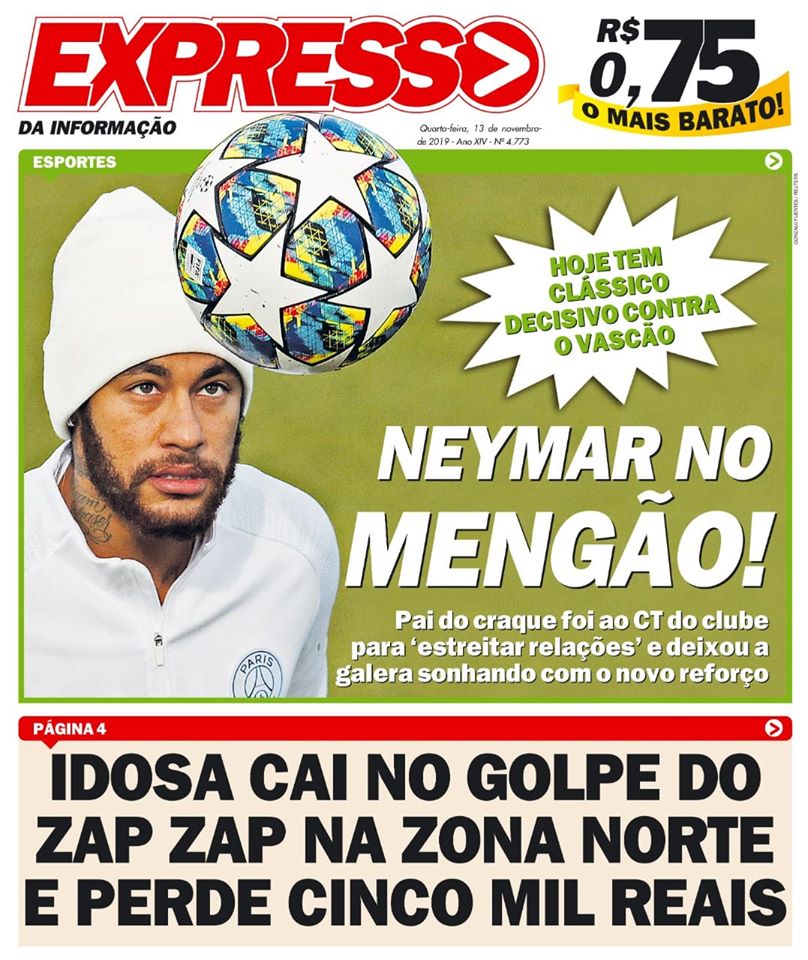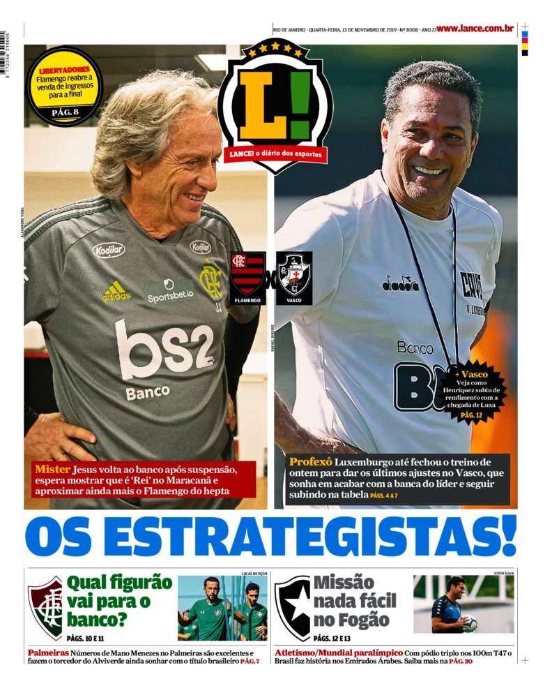 Veja como a imprensa destaca o clássico Urubu x Vasco desta 4ª-feira