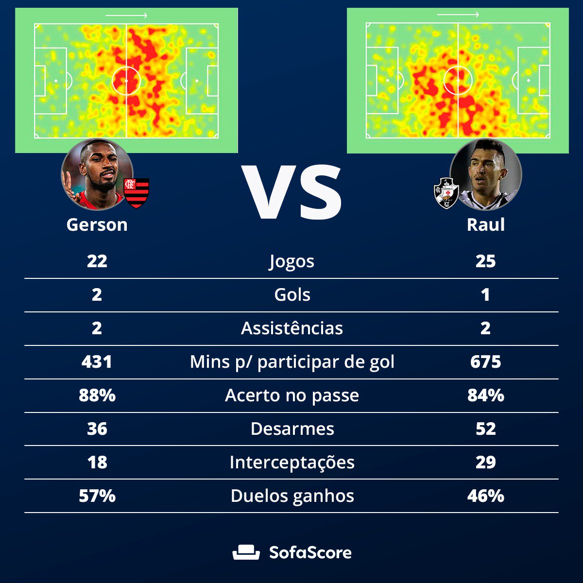 Duelo interessante no clássico Flamengo x Vasco de hoje: Gerson x Raul