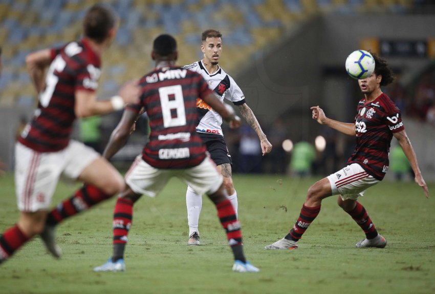 Com dois minutos, os rubro-negros quase marcaram o segundo, com Gabigol, mas o atacante chutou em cima de Fernando Miguel. O Vasco não se intimidou e criou sua primeira boa chance aos seis, em cabeceio de Marrony.
