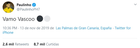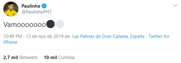 26/10/19 - Ex-vascaíno Paulinho é mais uma vez convocado para a Seleção Pré-Olímpica