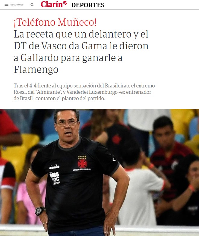 ¿Cuál fue la clave del planteo? El mismo Luxemburgo lo explicó en la conferencia de prensa. "Olvida el duelo táctico. Nada que ver... -le respondió a un periodista.- Estudiamos al adversario. Lo que hice es una cosa que no había visto hacer a nadie. Él (por el técnico de Flamengo, el portugués Jorge Jesús) retrasa a Willian Arao, abre a los dos zagueros y adelanta a los laterales para salir jugando", explicó el DT de Vasco.