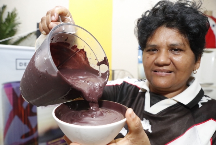 "Quem é paraense não toma açaí com mistura, como aqui no Rio de Janeiro. Ele só toma o verdadeiro. Aqui na loja vem muito paraense porque sabe que a gente faz exatamente como é feito no Pará. Trabalhamos com farinha d'água, de tapioca. Lá, açaí se come com peixe frito. Além disso, os componentes naturais fazem bem para a saúde. O açaí do Pará dá muito mais energia do que o carioca", garante Eliana, vascaína roxa como a frutinha, e que se apaixonou pela Cruz de Malta quando chegou ao Rio de Janeiro, ainda aos três anos.