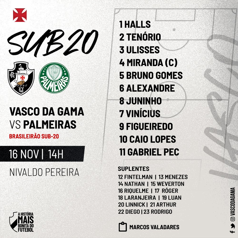 Juniores: Bruno Gomes e Gabriel Pec serão titulares contra o Palmeiras; veja escalação do Vasco