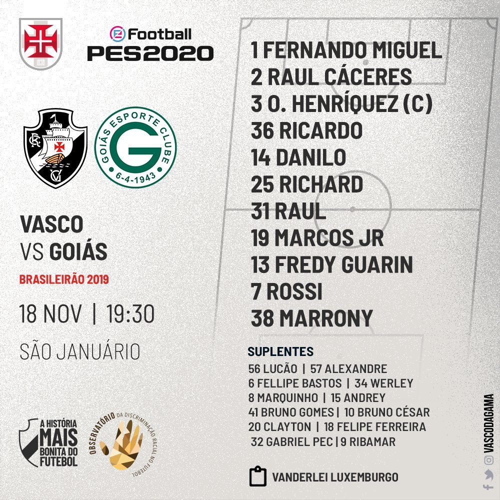 Confira a escalação do Vasco; Marcos Júnior é titular e Ribamar fica no banco