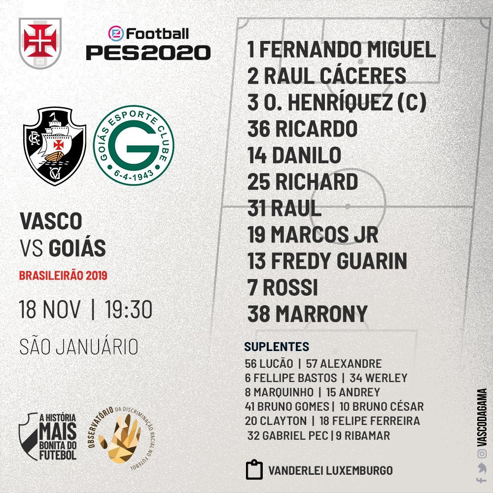 GIGANTE ESCALADO! Escalação oficial do Vasco para a partida contra o Goiás em São Januário. O pofexô repete a escalação do clássico contra o rival. Oswaldo Henríquez será o capitão do Cruzmaltino.