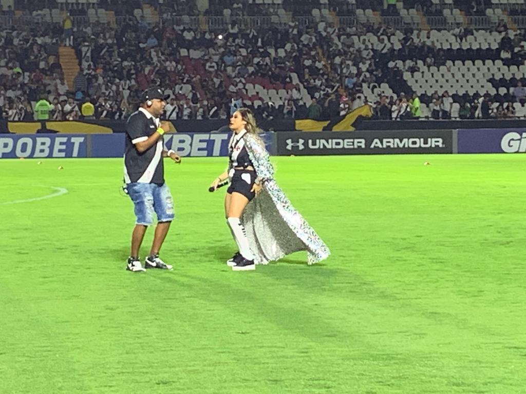 Veja mais uma foto de Lexa e MC Darlan cantando no gramado de São Januário antes de Vasco x Goiás