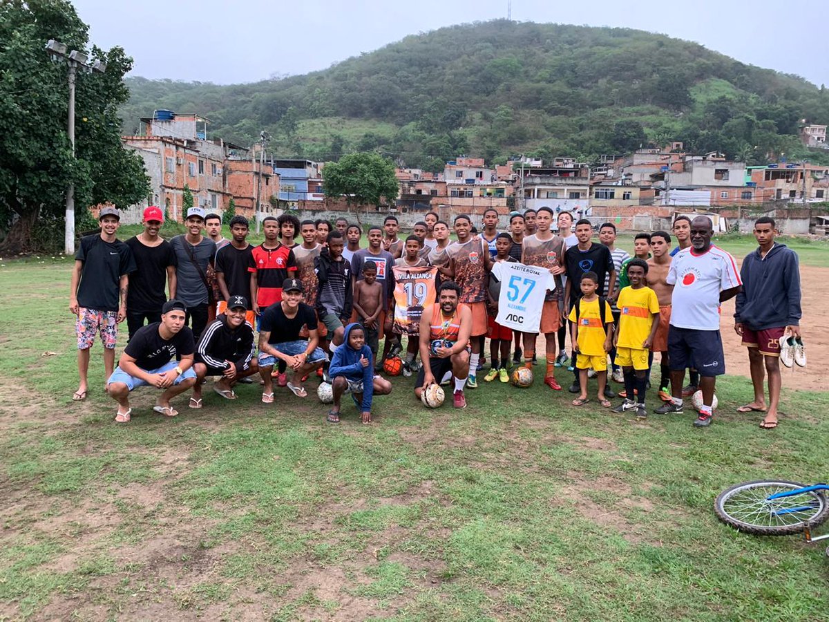 Após estrear nos profissionais, o lateral-esquerdo Alexandre Melo visitou o projeto onde foi criado, na Vila Aliança, nesta terça-feira. Ele posou para foto com a criançada e jovens do projeto e com o professor Franklin, que vestiu a camisa utilizada pelo garoto na partida.