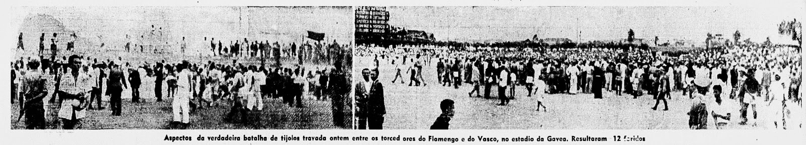 A oportunidade surgiu com a expulsão de Biguá, do clube da Gávea, por um ato anti-desportivo, desencadeando a confusão que envolveu todos os jogadores em campo e a invasão generalizada de dirigentes e torcedores do time da casa, dando início a uma verdadeira batalha de tijolos. Os torcedores do Vasco, diante da evidente trama, entraram em conflito e ambas as torcidas desmontaram o muro que municiou os petardos lançados de lado a lado.