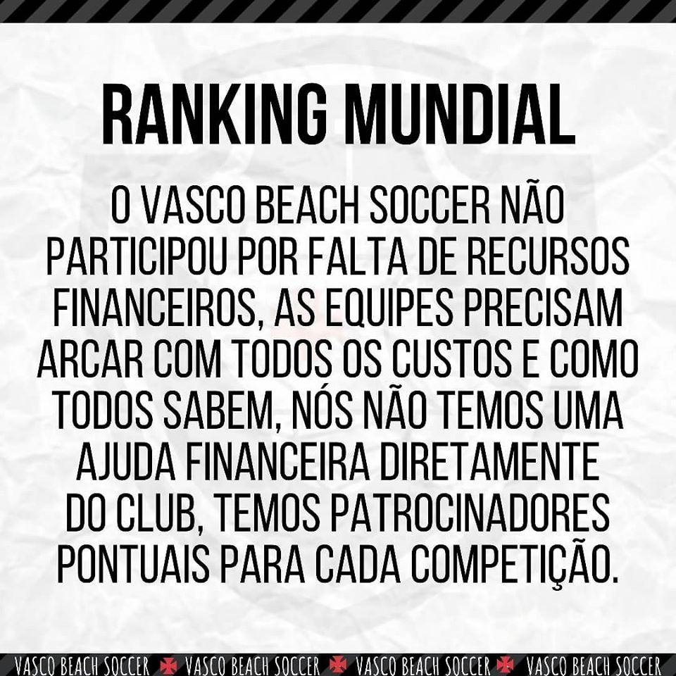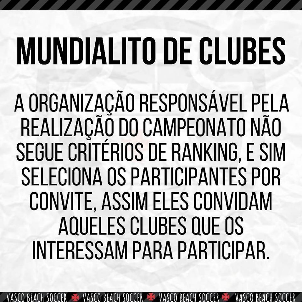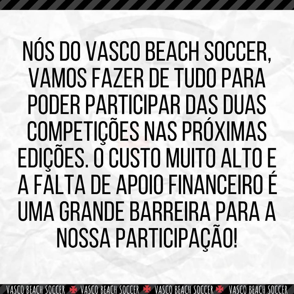 Beach Soccer: Vasco publica esclarecimento sobre a não participação no Mundialito e no World Winners Cup