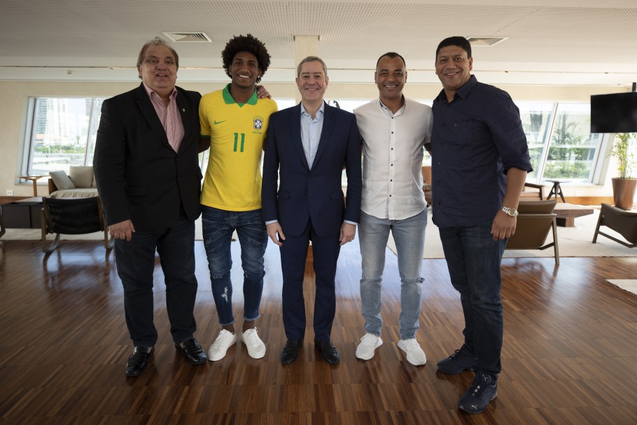 De medalha no peito e com a taça entregue ao Museu, Talles Magno almoçou com o Presidente Rogério Caboclo na sede da CBF. Durante a refeição, o atacante encontrou outros campeões mundiais com a Seleção Brasileira Principal: o ex-lateral Cafu e o ex-zagueiro Márcio Santos. Talles posou para foto com os dois ídolos e o também tetracampeão do mundo, Branco, Coordenador das Seleções de Base.