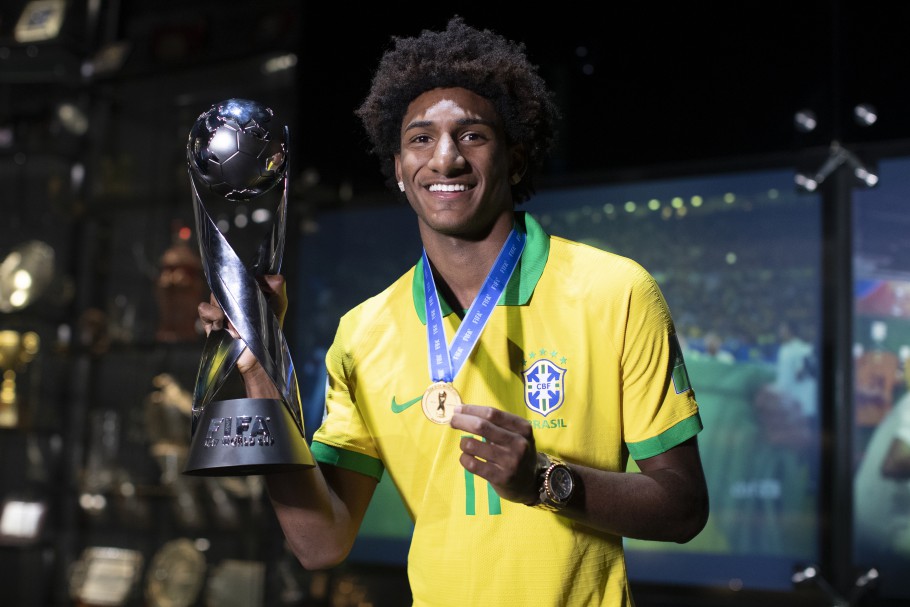 Talles Magno recebe medalha do Mundial Sub-17 e entrega taça ao Museu Seleção Brasileira