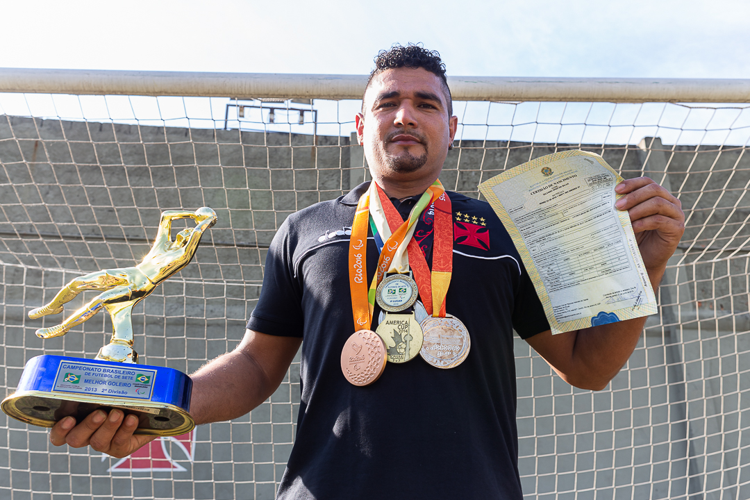 Foram várias competições pelo Futebol de 7 para Paralisados Cerebrais (PC), com viagens a sete países. A surpresa veio ao tirar a segunda via da certidão, em 2017, para casar-se.
