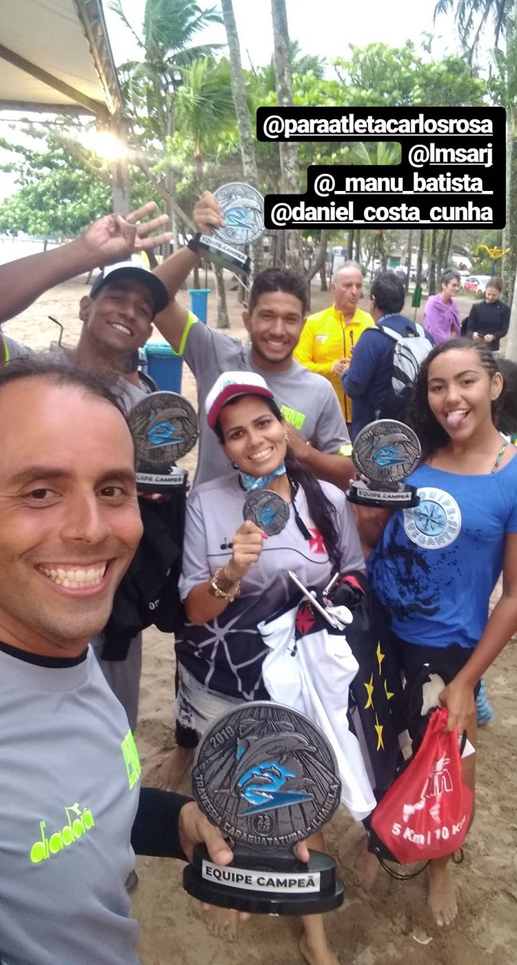 Equipe campeã do revezamento 22 km de Caraguatatuba x Ilha Bela, prova muito dura onde tivemos uma mudança de vento e maré muito forte desde o início da prova, prova onde a boa natação e a orientação trabalham juntos e fomos perfeitos chegando com mais de uma hora na frente da segunda colocada foram quase 07 horas de prova, única equipe a fazer isso em menos de 07 horas.