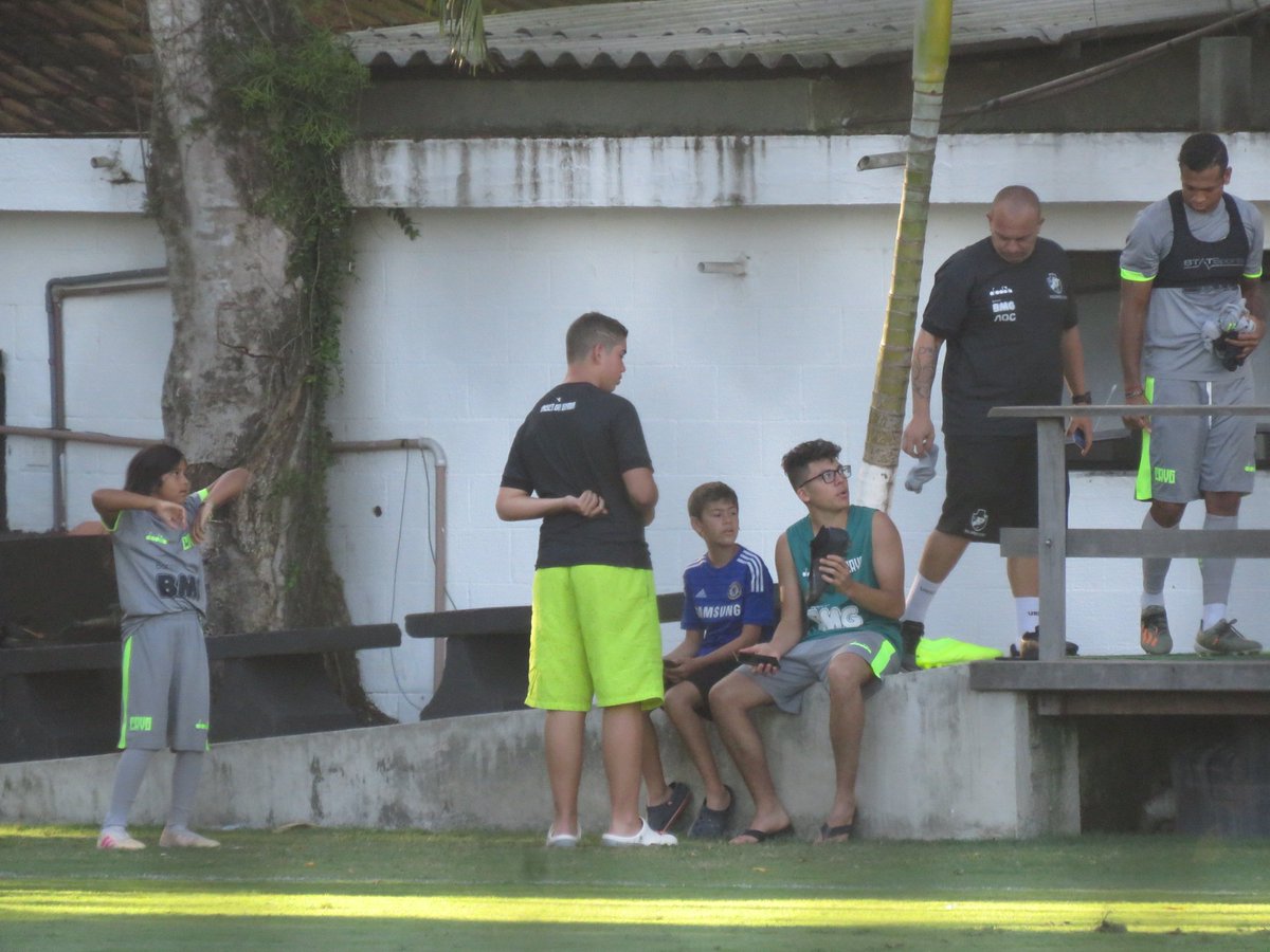 Quem treinou de titular já foi para o vestiário. Quem ficou um pouco mais no campo foi o Guarín, por um motivo nobre: seus filhos (e os amigos dos filhos) vieram novamente para o treino. #gevas