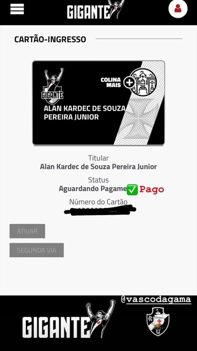 KARDEC É GIGANTE! O Chongqing Lifan acabou de jogar e logo após a partida, o atacante Alan Kardec, cria de São Januário, aproveitou para se associar ao Gigante da Colina.