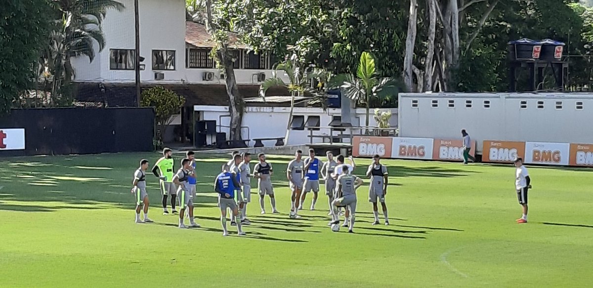 Maurício Copertino conversa com alguns jogadores nesse momento é vai fazer um trabalho tático com o time titular #gevas
