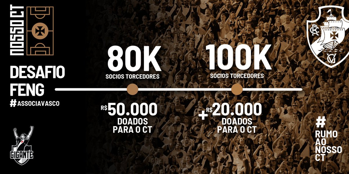 FENG vai doar mais R$ 20 mil para o novo CT caso Vasco atinja meta de 100 mil sócios nesta 6ª-feira