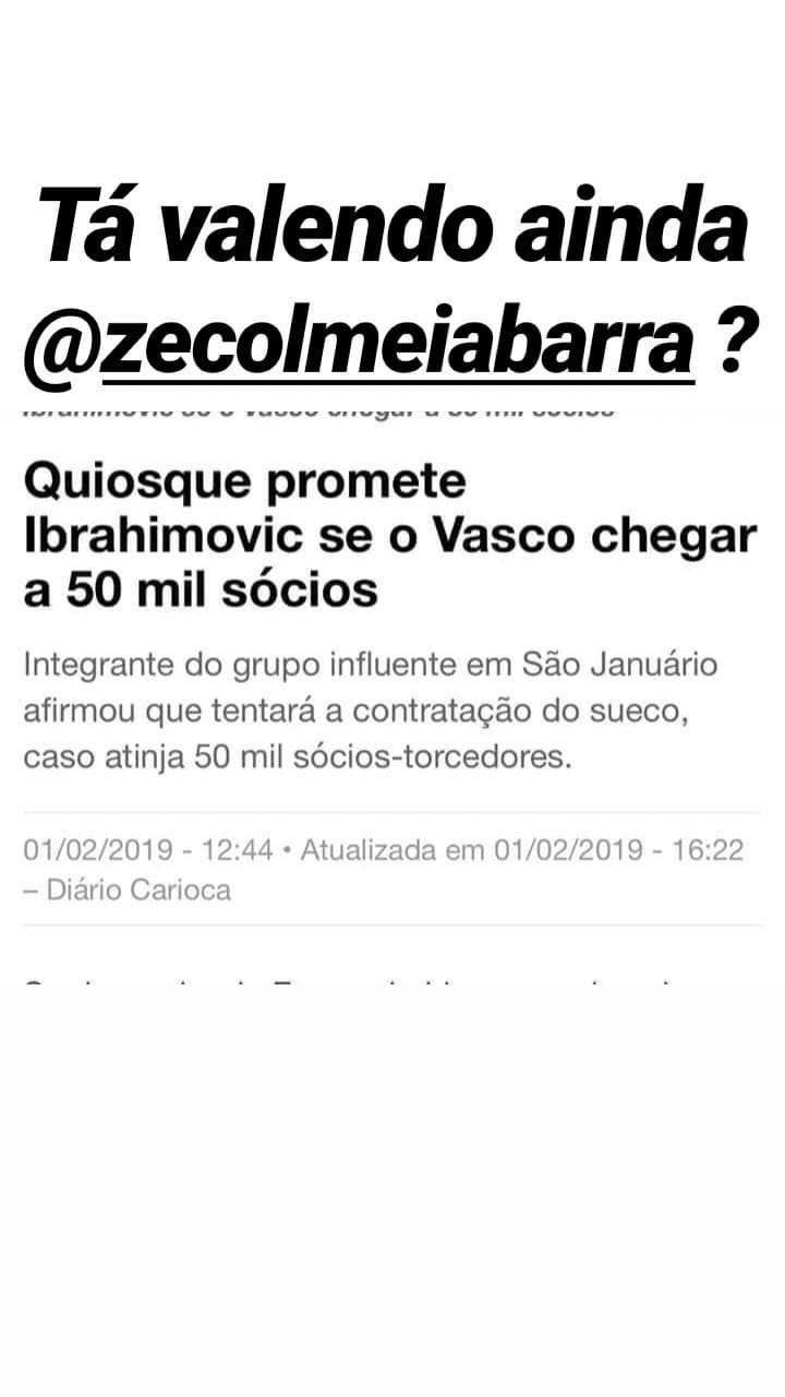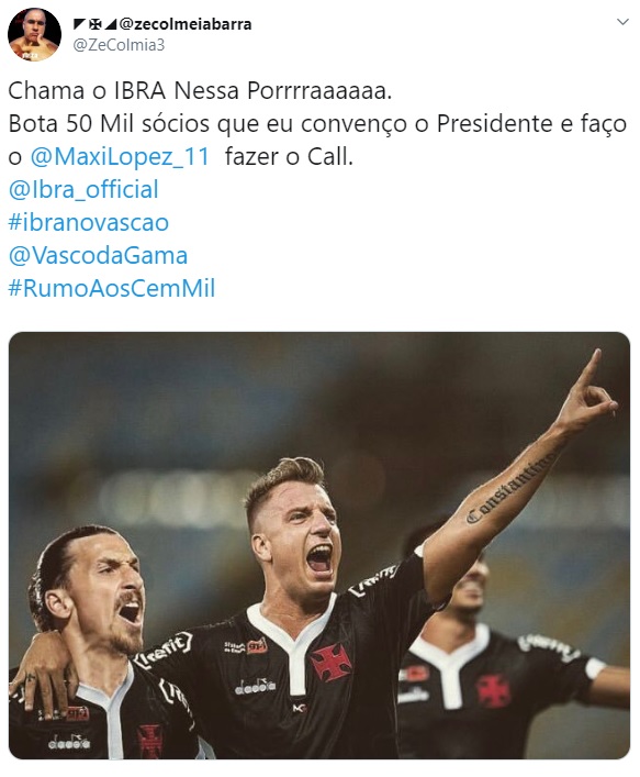 Torcedor cobra 'promessa' de Zé Colméia: tentar Ibrahimovic se o Vasco chegasse a 50 mil sócios