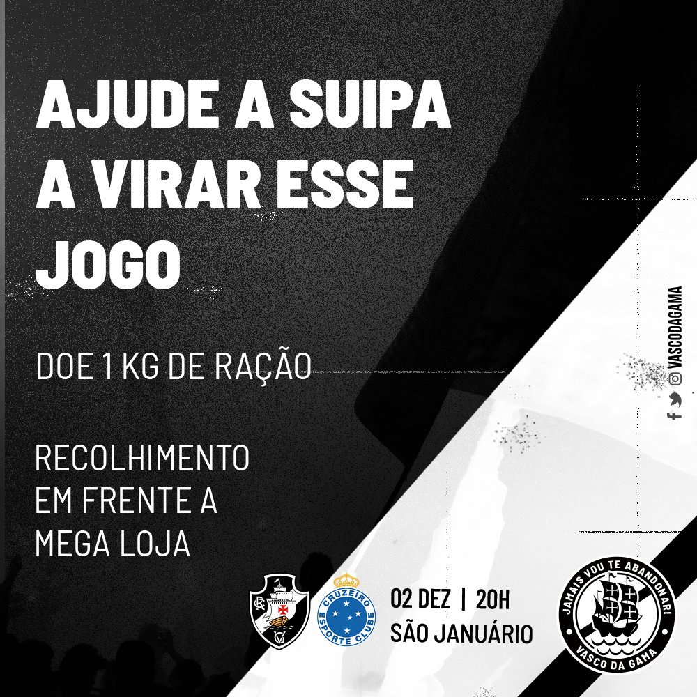 Vasco recolherá doações para a Suipa no jogo contra o Cruzeiro