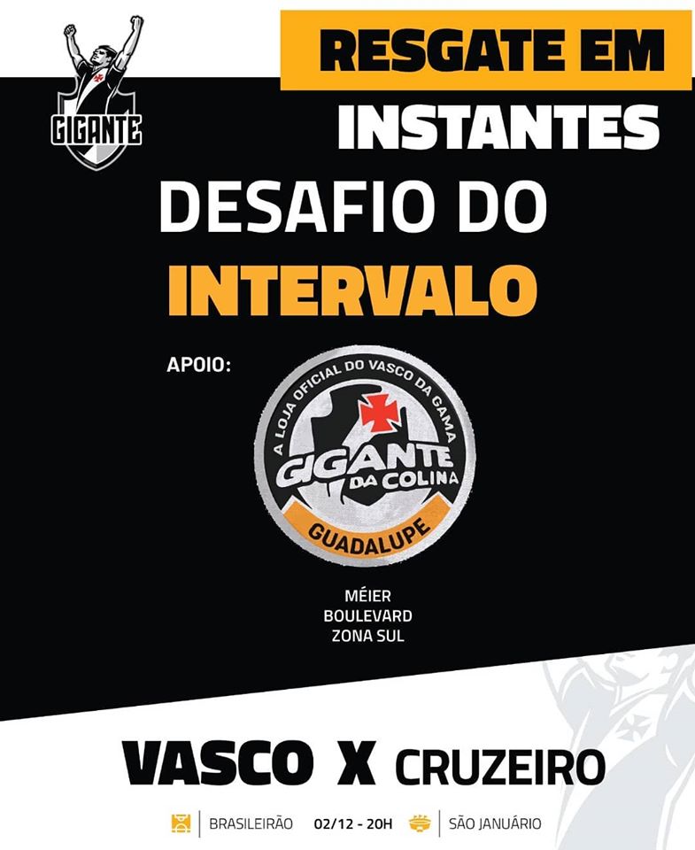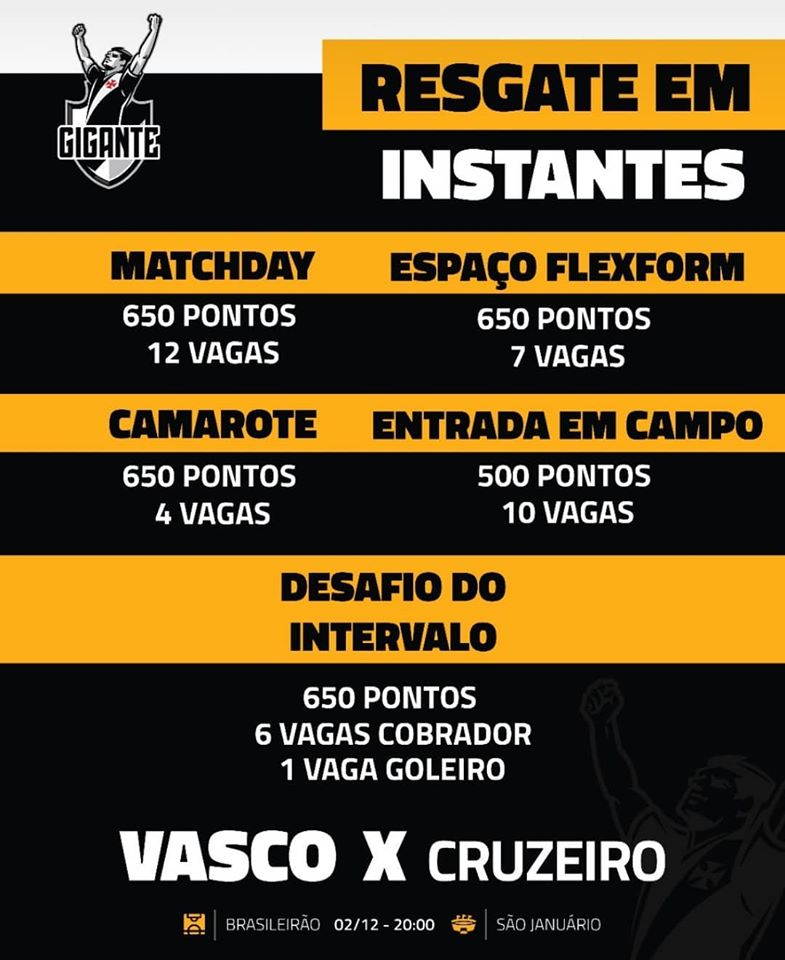 Fique ligado que em instantes vai rolar resgate de experiências para Vasco x Cruzeiro no site do Gigante! ? F5️⃣