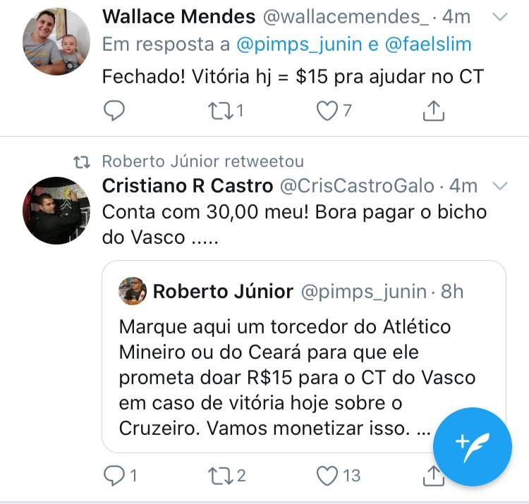 Torcedores de Atlético Mineiro e Ceará prometem doar uma quantia ao CT do Vasco caso o Cruzmaltino vença o rival do Galo e ajude o Vozão na briga pelo rebaixamento.