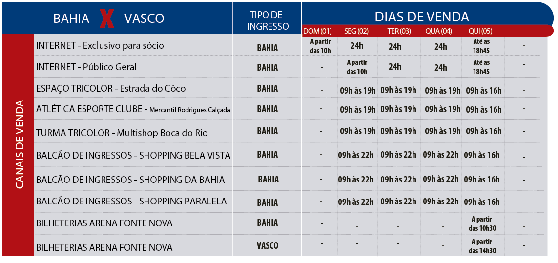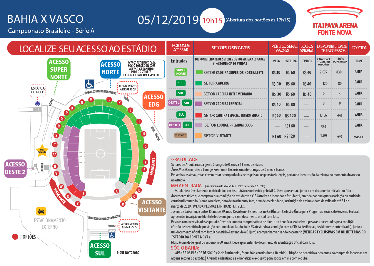 Alô Torcedor! Quinta (05) tem disputa entre Bahia e Vasco pelo Campeonato Brasileiro e se você quiser acompanhar esse jogo de perto fique ligado nas informações de venda!