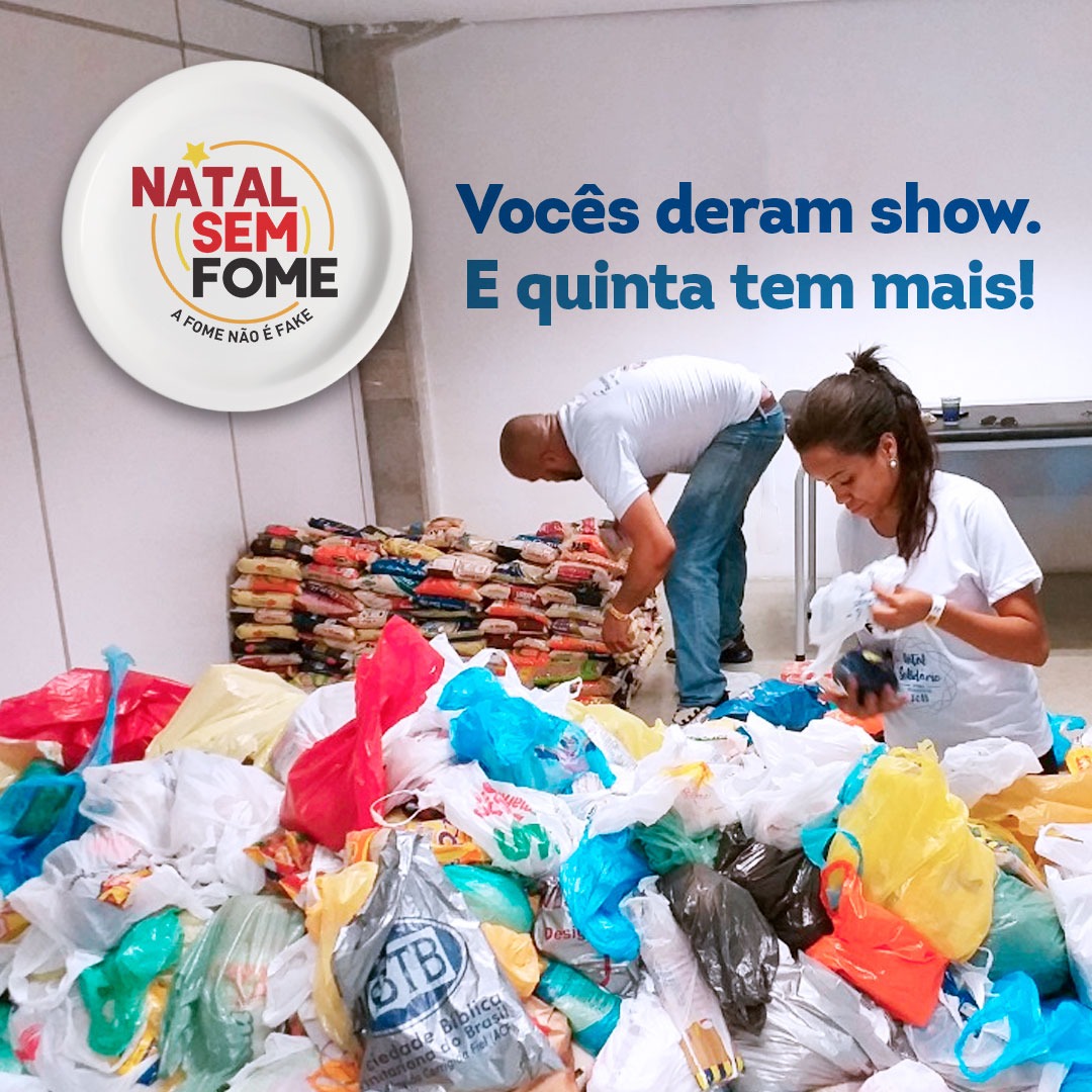 ?? Foram mais de 3 toneladas arrecadadas na final do futebol feminino, sábado, em favor do 'Natal Sem Fome'. A pedido do projeto, vamos manter a campanha pro jogo de quinta. Leve 1kg de alimento e participe dessa corrente de solidariedade #BBMP