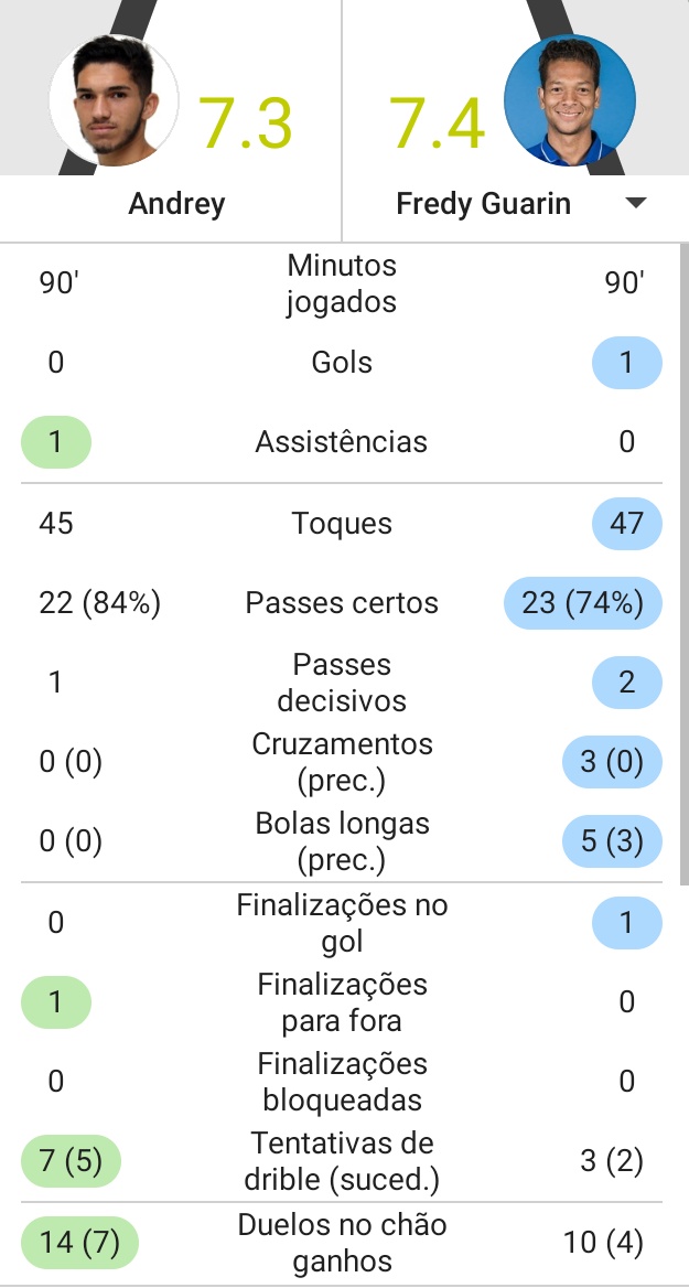 Os números do @AndreyRamos98 e @fguarin13 no jogo de ontem.